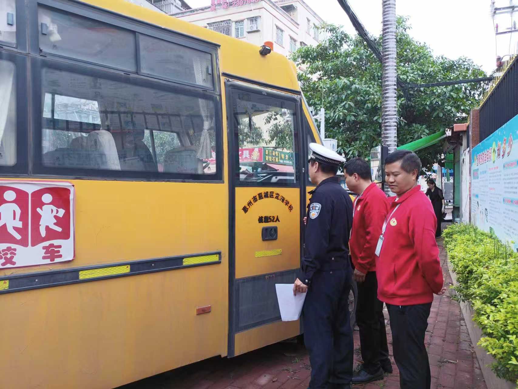 3月4日,惠州市公安局交通管理支队江东大队走进龙湖学校开展校车全方位“安全体检”,用细致入微的检查为新学期撑起交通安全伞。