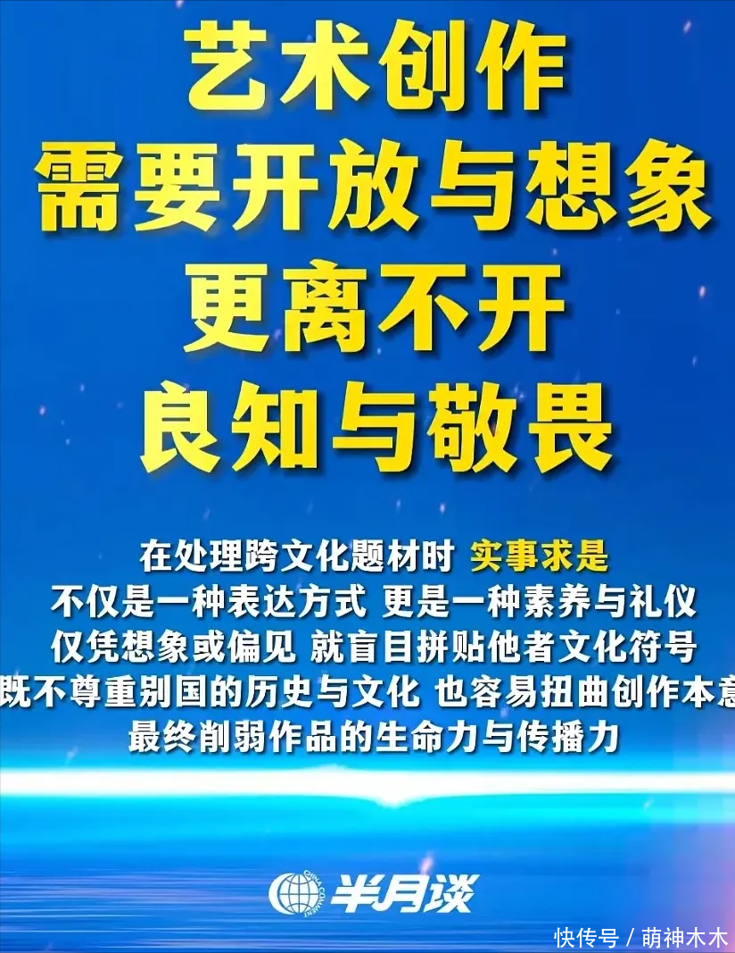 对于任何狡辩全智贤辱华实为影视创作的说法,官媒半月谈有话讲,半月谈表示艺术创作需要开放与想象,但离不开良知与敬畏。任何跨文化题材创作需要实事求是,而不是任凭臆想与偏见歪曲他国文化,这不仅不尊重别国历史和文化,更是欠缺素养和礼仪。